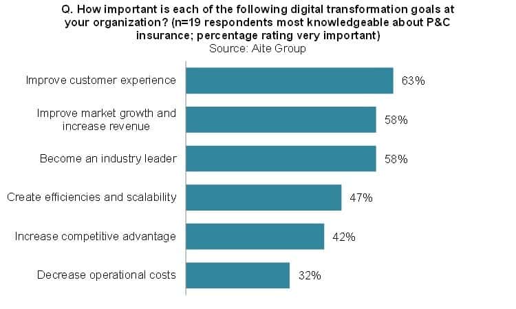 And 63% of respondents to a survey of P&C insurers from Aite Group said that it was customer experience that drove their technology investment. That’s because customer expectations are changing across every industry, and insurers are no exception. Customers expect omni-channel solutions across mobile, web, chatbot, and call centers. They demand to be able to interact with their insurer anywhere, at any time, using the method that is most comfortable for their current situation.