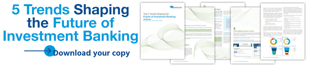 If your investment banking firm needs help with operational strategy, planning for your portfolio integration initiatives, or building your data and security roadmap, Silverline is here to help. As the world continues to change, a few key trends are coming into focus that we’re seeing across the industry and from our clients. In our newest ebook, we walk through each of the top five investment banking trends for 2021 and beyond so your team can manage the next decade of deal-making. Click on the image below to learn: