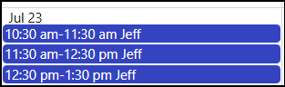 If the booked meeting event had been updated to last 15 minutes longer than originally configured, the timeslot booked as well as the timeslot into which the new end time extends would both be removed from the Availability calendar. Subsequent timeslots would remain as they were.