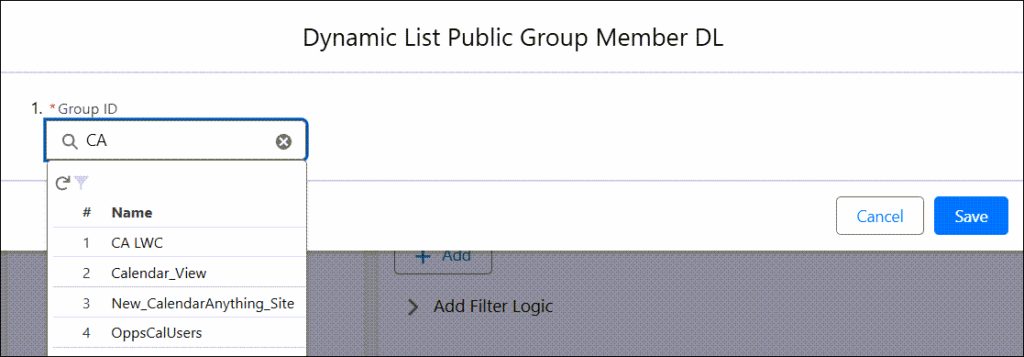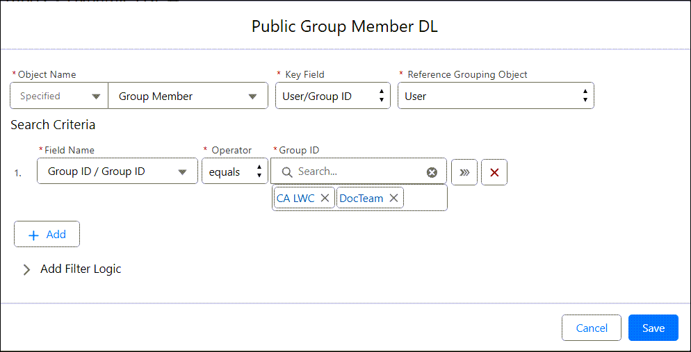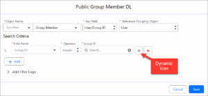 - Assigned To: Name of newly created Dynamic List — in example, this is Public Group Member DL.