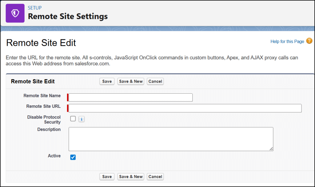 - Go to Security > Remote Site Settings.