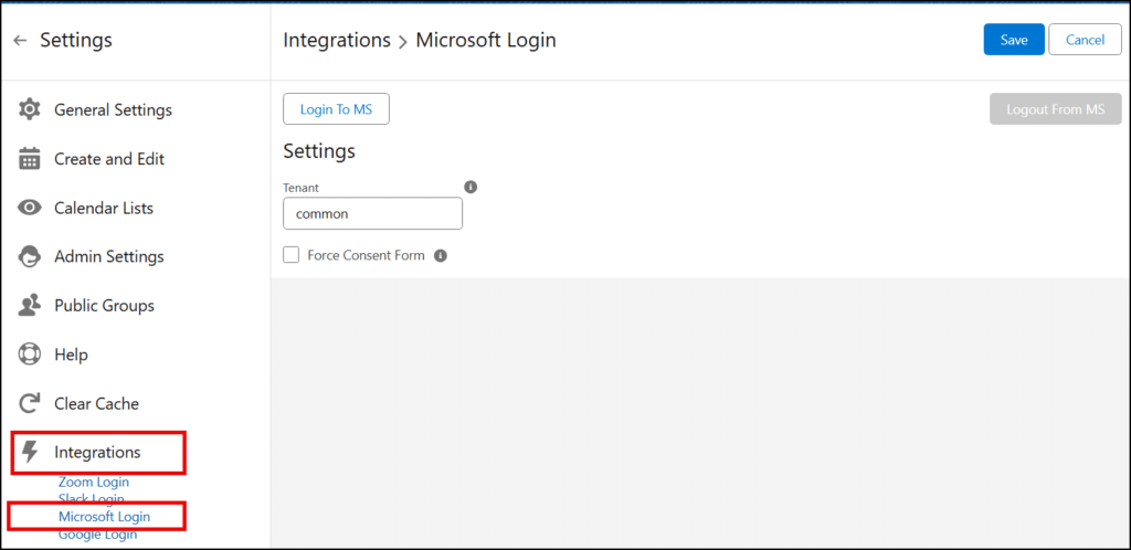 - Go to Settings> Integrations > Microsoft Login.