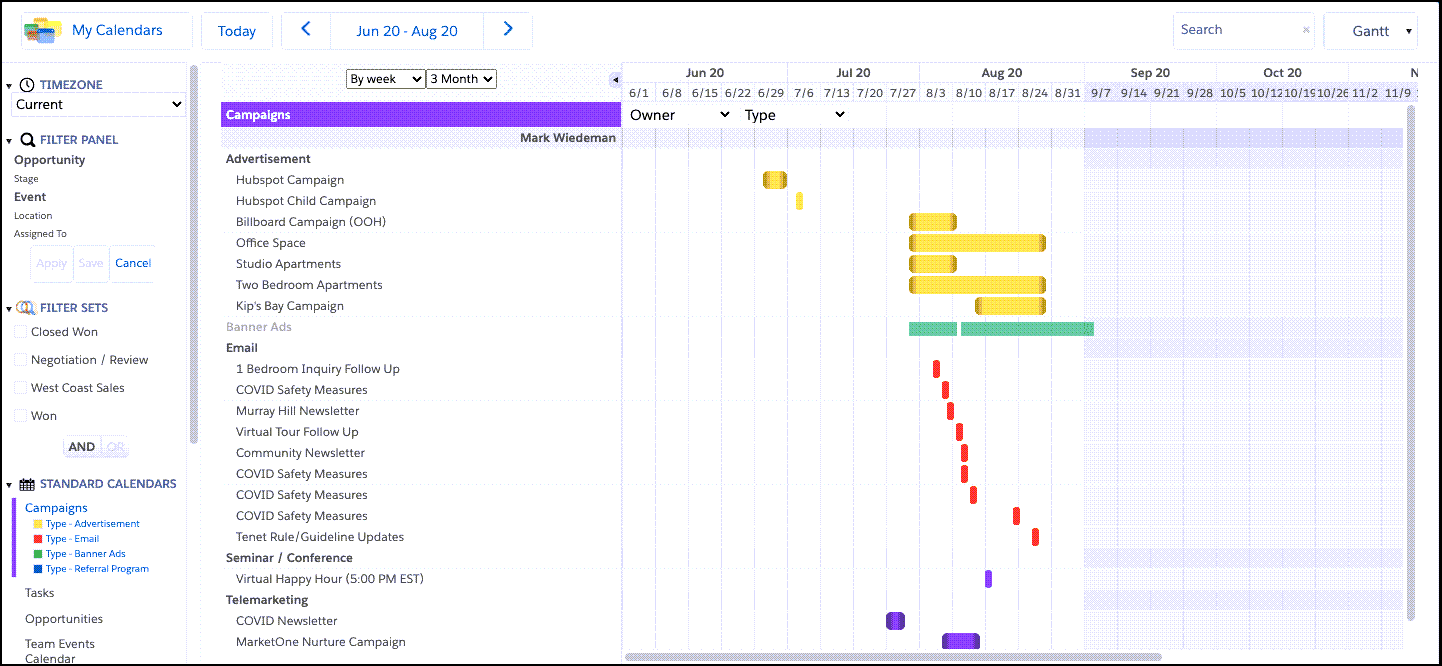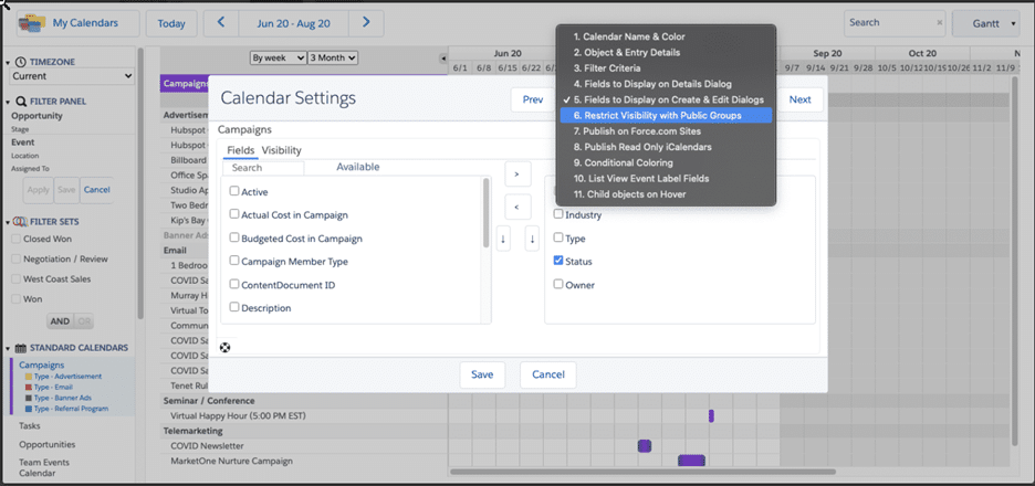 - Sidebar Color Legend Filter: The Color Legend Filter enables you to filter calendar records using your sidebar by directly interacting with your calendar’s color legend without the need to enable the filter panel.